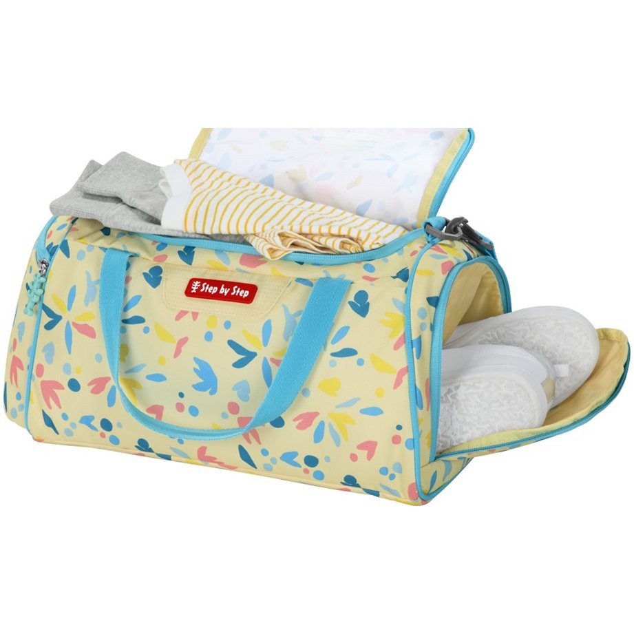 Taška na šport Step by Step ponúka priestor pre všetko športové vybavenie od tenisiek až po tričká. Má odnímateľný, dĺžkovo nastaviteľný ramenný popruh, ktorý je vybavený polstrovanou podložkou pre maximálny komfort pri nosení. Bočné vrecko na bezpečné uloženie cenností ako mobilný telefón, peňaženka alebo kľúče, tunel na uloženie mokrej alebo špinavej bielizne alebo topánok, dvojcestný zips, kryté zipsy a naimpregnovaná látka, viac odolné proti dažďu. Športová taška tiež dislonuje polstrovaným dnom, rukoväť na prenášanie so zapínaním na suchý zips.