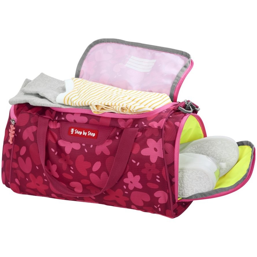 Praktická cestovná taška pre dievčatá Step by Step Wild Horse Nora ponúka priestor pre všetko športové vybavenie od tenisiek až po tričká. Má odnímateľný, dĺžkovo nastaviteľný ramenný popruh, ktorý je vybavený polstrovanou podložkou pre maximálny komfort pri nosení. Bočné vrecko na bezpečné uloženie cenností ako mobilný telefón, peňaženka alebo kľúče, tunel na uloženie mokrej alebo špinavej bielizne alebo topánok, dvojcestný zips, kryté zipsy a naimpregnovaná látka, viac odolné proti dažďu. Malá športová taška tiež dislonuje polstrovaným dnom, rukoväť na prenášanie so zapínaním na suchý zips.