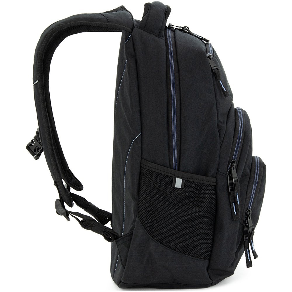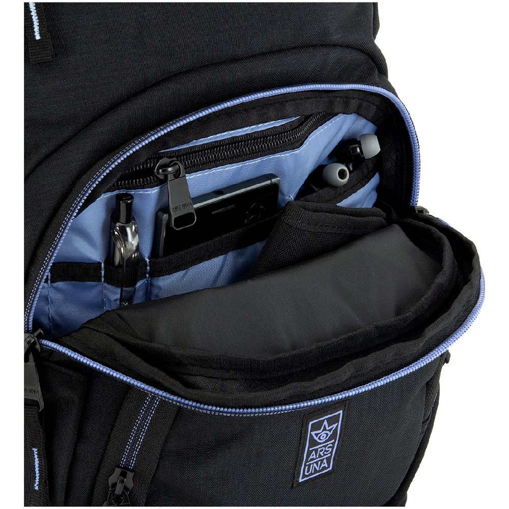 Vysoko kvalitný školský batoh v čierno-fialovom dizajne Autonomy - , typ AU2. Batoh je vyrobený z prvotriedneho a pevného materiálu. Skladá sa zo štyroch hlavných komôr na zips s ďalším bohatým vnútorným členením na písacie potreby, mobil či iné drobnosti. Batohu nechýba ani fleecová priehradka pre bezpečné uloženie okuliarov. Ďalšou výhodou je polstrovaná priehradka pre notebook (veľkosť 14 "). Na popruhoch sú umiestnené reflexné prvky. Chrbát batohu je polstrovaný a nastaviteľný, súčasťou je aj hrudný popruh, ktorý možno v prípade potreby úplne vybrať.