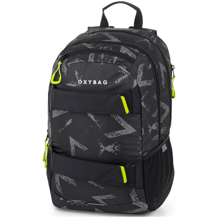 Výhodný a praktický set batohu a študentské etue. Študentský aj voľnočasový batoh do školy rady OXY SPORT vyniká ergonomicky tvarovaným chrbtom, nastaviteľnými polstrovanými ramennými popruhmi a hrudným popruhom, vďaka ktorým sa pohodlne nosí. Školský batoh sa skladá z dvoch hlavných komôr a jedného menšieho predného vrecka s pevnými zipsami a praktickými pútkami. Vnútri batohu je vystužená vrecko na notebook, karabína na kľúče, menšie vrecko na drobnosti a skryté vrecko na chrbte. Nechýba tiež bočné vrecko na fľašu na pitie a rad reflexných prvkov, vďaka ktorým je batoh lepšie viditeľný. Batoh je ideálny ako pre školákov na druhom stupni tak aj pre voľnočasové aktivity študentov a dospelých.