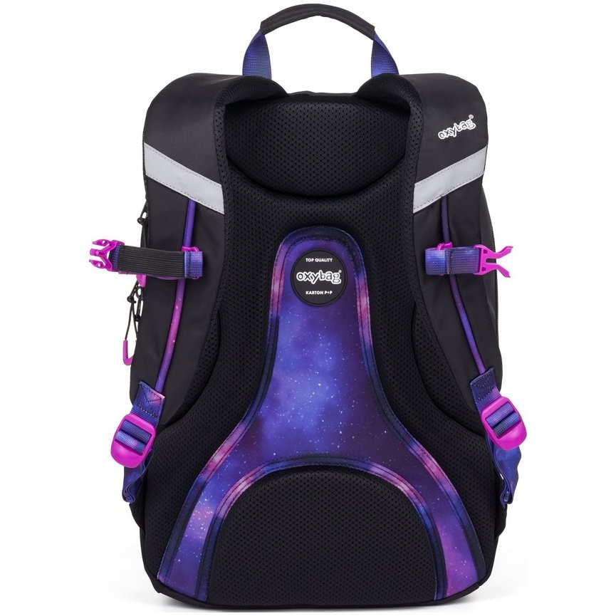Batoh do školy: Študentský i voľnočasový školský plecniak pre dievčatá rady OXY SPORT vyniká ergonomicky tvarovaným chrbtom, nastaviteľnými polstrovanými ramennými popruhmi a hrudným popruhom. Batoh sa skladá z dvoch hlavných komôr a jedného menšieho predného vrecka s pevnými zipsami a praktickými pútkami. Vnútri batohu je vystužená vrecko na notebook do 15'', karabína na kľúče, menšie vrecko na drobnosti a skryté vrecko na chrbte. Nechýba tiež bočné vrecko na fľašu na pitie a rad reflexných prvkov, vďaka ktorým je batoh lepšie viditeľný. Batoh je ideálny ako do školy pre školákov na druhom stupni tak aj pre voľnočasové aktivity študentov a dospelých.