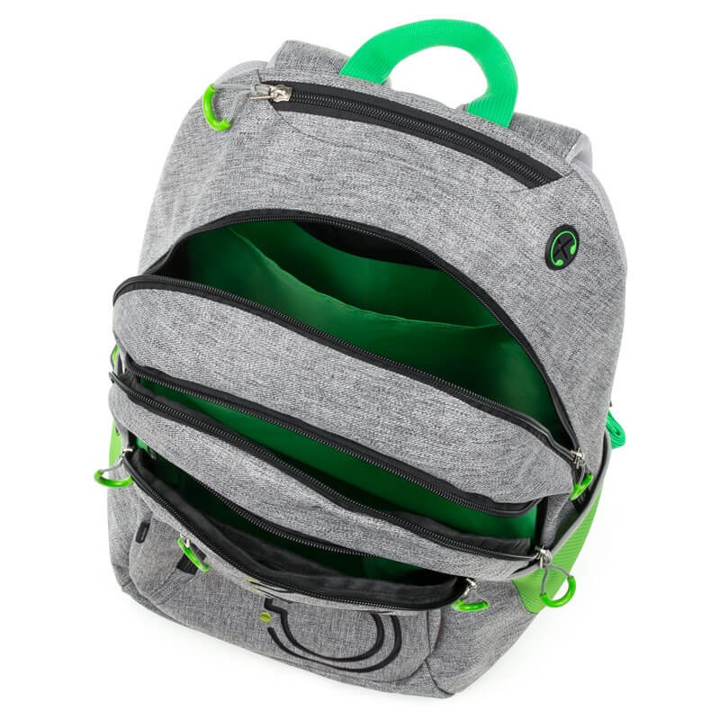 Dvojkomorový školský batoh v modernom farebnom prevedení vhodný pre 2. stupeň ZŠ a strednú školu s veľkou prednou kapsou. V priestrannej hlavnej komore nájdete kapsu na notebook, v prednej potom praktický organizér a zipsovú kapsičku. Batoh má polstrovaný, priedušný chrbát potiahnutý sieťovinou, široké a polstrované ramenné popruhy s hrudným pásom, ktorý sa dá výškovo posúvať. Dve bočné vrecká sú vhodné pre fľašu s pitím alebo ďalšie nevyhnutnosti.