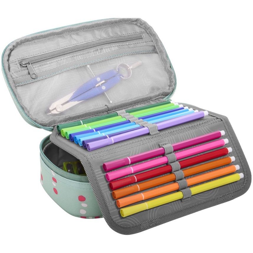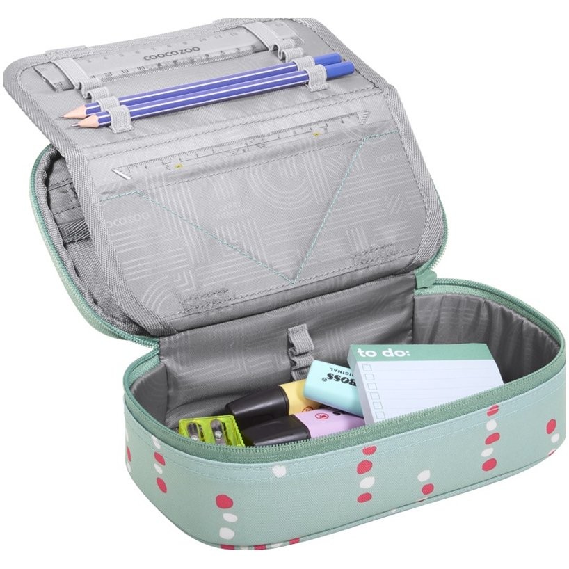 Školský peračník má vrecko na zips vo veku pre malé predmety a 6 pútok na perá a ceruzky pre maximálne usporiadanie. Ďalších 7 väčších pútok pre ďalšie príslušenstvo (napr. pravítko, kružítko, guma, malý trojuholník). Priestor na rozvrh pre rýchly prehľad o školskom dni, vnútorný klopa sa dá otvoriť a zavrieť suchým zipsom, peračník má uzavretie na zips.