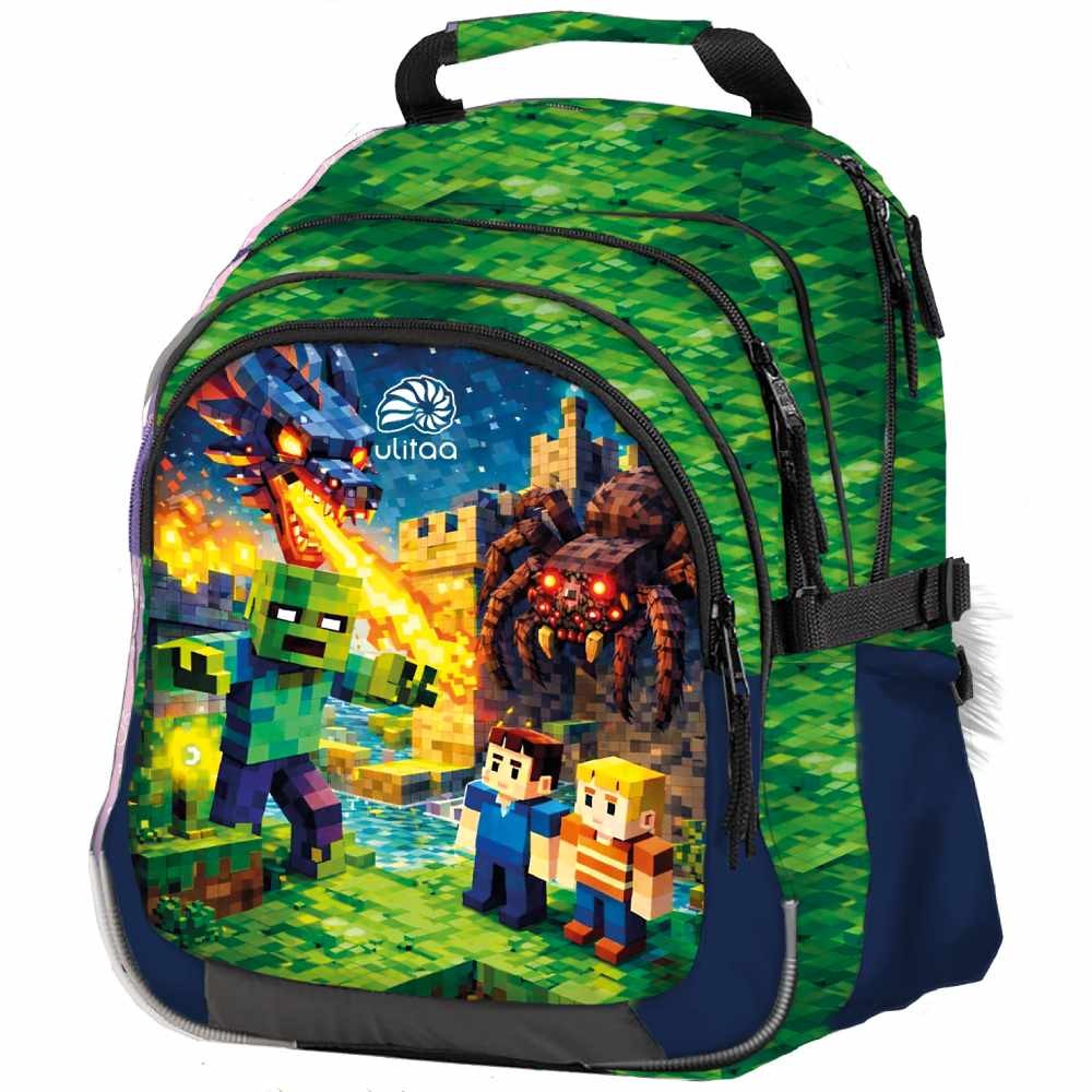 Školská taška pre prvákov Ulitaa Krychlozem v hernom dizajne, ktorá perfektne padne aj menším prváčikom. Náš ergonomický batoh značky Ulitaa je určený pre deti do 1.triedy od 115 až do 135 cm a je ideálnou voľbou tam, kde bežné batohy nesedia. Konkurencia v tejto kategórii batohov často neponúka vhodné riešenie, preto sme vyvinuli model, ktorý presne zodpovedá potrebám menších školákov.