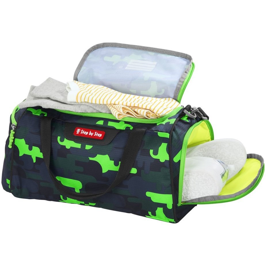 Detská taška na šport Step by Step Black Cat Chico ponúka priestor pre všetko športové vybavenie od tenisiek až po tričká. Má odnímateľný, dĺžkovo nastaviteľný ramenný popruh, ktorý je vybavený polstrovanou podložkou pre maximálny komfort pri nosení. Bočné vrecko na bezpečné uloženie cenností ako mobilný telefón, peňaženka alebo kľúče, tunel na uloženie mokrej alebo špinavej bielizne alebo topánok, dvojcestný zips, kryté zipsy a naimpregnovaná látka, viac odolné proti dažďu. Športová taška tiež dislonuje polstrovaným dnom, rukoväť na prenášanie so zapínaním na suchý zips.