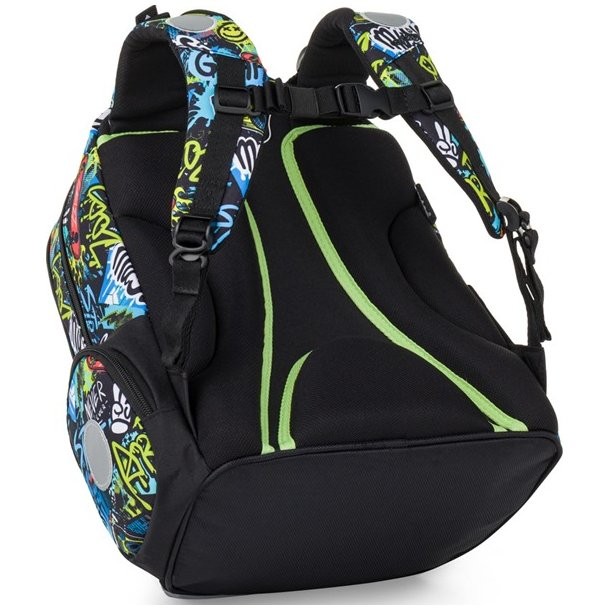 Školský batoh OXY GO Funny Boy pre chlapcov zaujme moderným dizajnom a premyslenou funkčnosťou. Batoh je ideálny pre deti od 1. do 3. triedy vysoké od 125 cm. Má anatomicky tvarovaný, priedušný chrbát a nastaviteľné ramenné popruhy na pohodlné nosenie. Školská taška má pridané háčiky umožňujú uchytenie dlhých popruhov. Vnútorné vrecká ponúkajú dostatok miesta na učebnice, zošity aj ďalšie potreby, pevné nepremokavé dno chráni obsah pred ušpinením a pretečením. Bočné vrecká, jedno na zips a jedno otvorené, slúži napr. na fľašu. Reflexné prvky zaisťujú bezpečnosť.