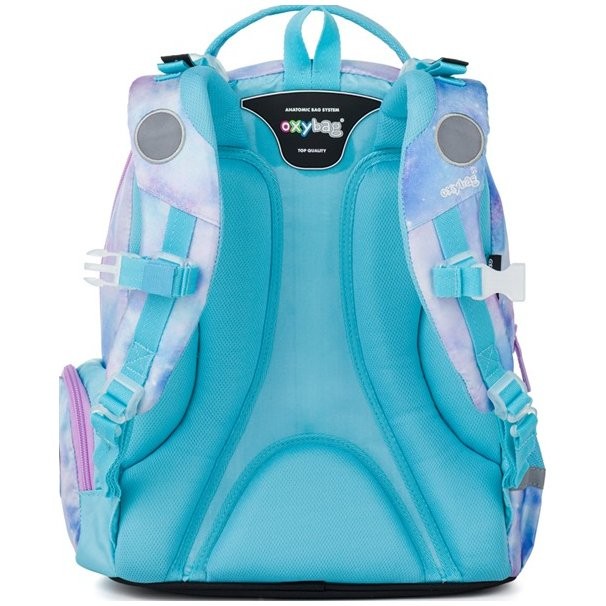 Školský batoh OXY GO Unicorn zaujme moderným dizajnom a premyslenou funkčnosťou. Batoh je ideálny pre deti od 1. do 3. triedy vysoké od 125 cm. Má anatomicky tvarovaný, priedušný chrbát a nastaviteľné ramenné popruhy na pohodlné nosenie. Školská taška má pridané háčiky umožňujú uchytenie dlhých popruhov. Vnútorné vrecká ponúkajú dostatok miesta na učebnice, zošity aj ďalšie potreby, pevné nepremokavé dno chráni obsah pred ušpinením a pretečením. Bočné vrecká, jedno na zips a jedno otvorené, slúži napr. na fľašu. Reflexné prvky zaisťujú bezpečnosť.