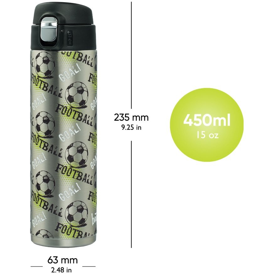 - Fľašu s objemom 450 ml ponúkame v niekoľkých hravých dizajnoch, ktoré je možné zladiť s ďalšou školskou výbavou.