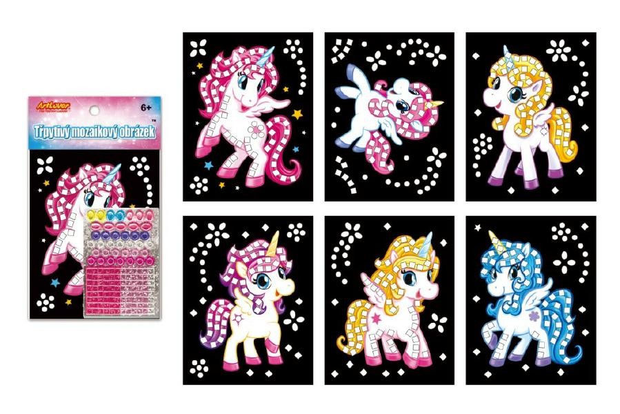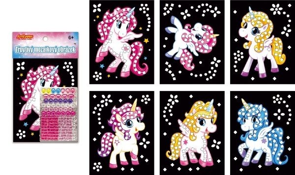 Trblietavý mozaikový obrázok mini s lepiacimi štvorčeky 10x16cm mix druhov