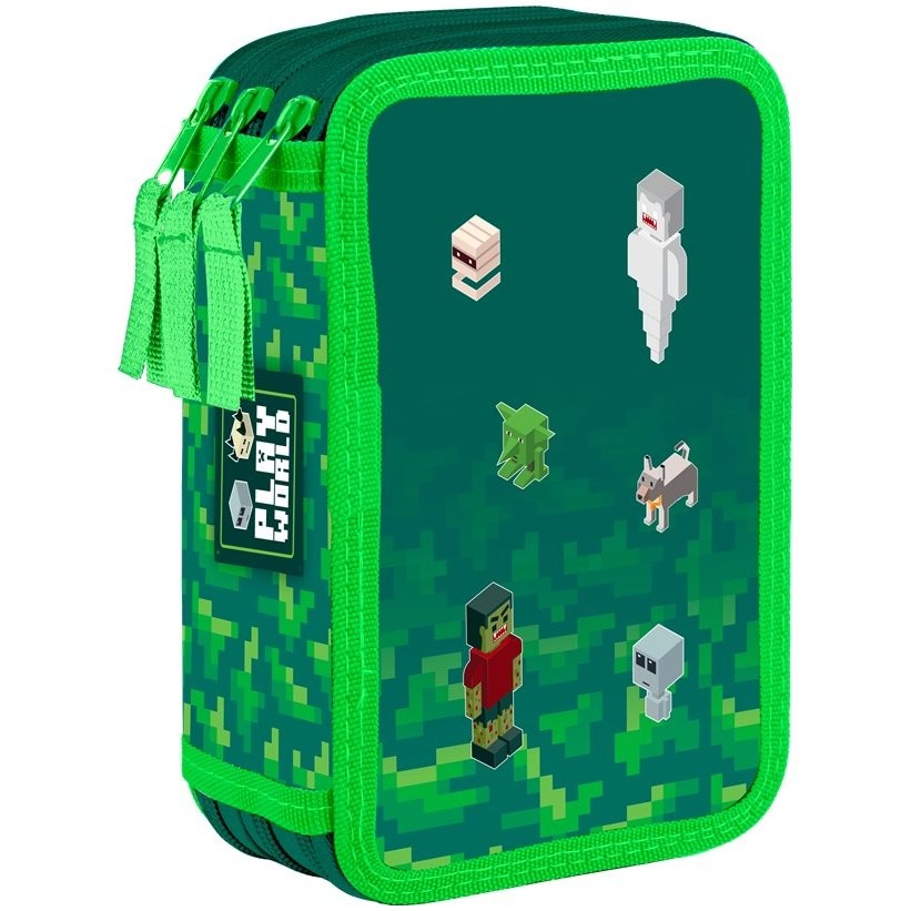 Chlapčenský peračník trojposchodový bez náplne. Školský peračník Playworld obsahuje 41 gumových pútok na uloženie všetkých písacích potrieb a drobností potrebných na výučbu. Peračník má pevný zips s veľkými ťaháčikmi pre jednoduchú manipuláciu. Jedno poschodie je vybavené priehľadnou priehradkou pre týždenný rozvrh.