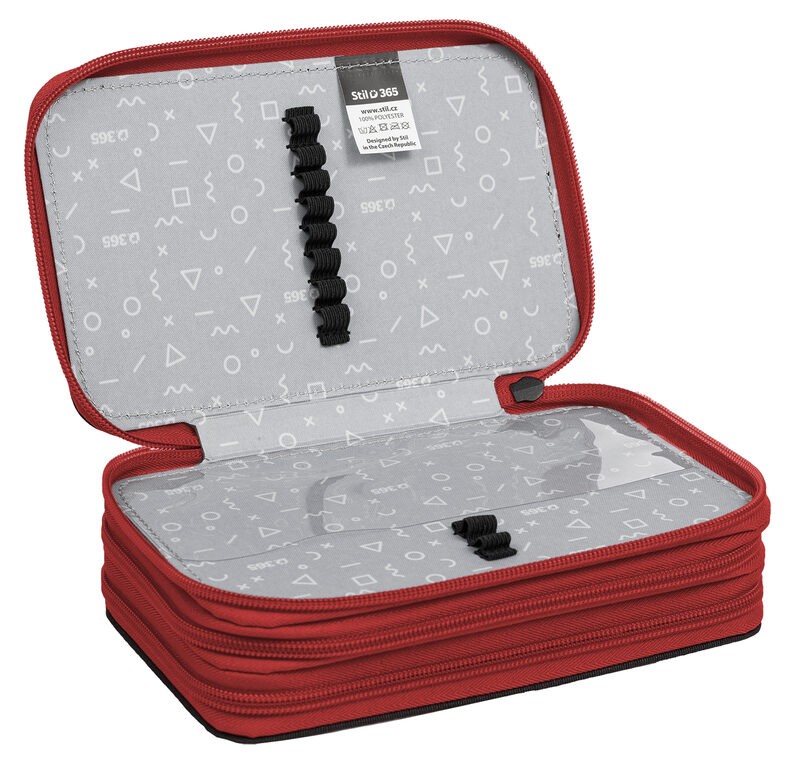 Druhé poschodie obsahuje priehľadnú kapsičku na rozvrh hodín a 10 pevných gumičiek pre rôzne písacie potreby.