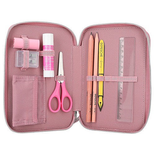 Peračník obsahuje: 2 ceruzky, 18 pasteliek, 18 fixiek, nožnice, lepidlo, pravítko, strúhadlo, gumu a vrecko.