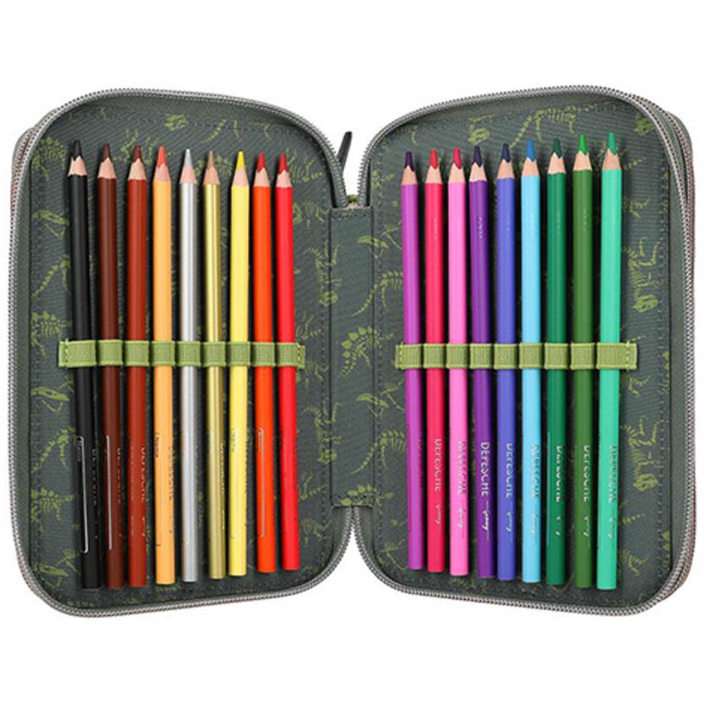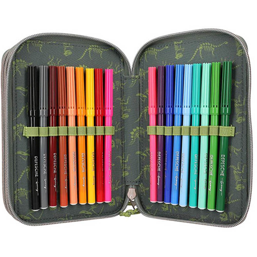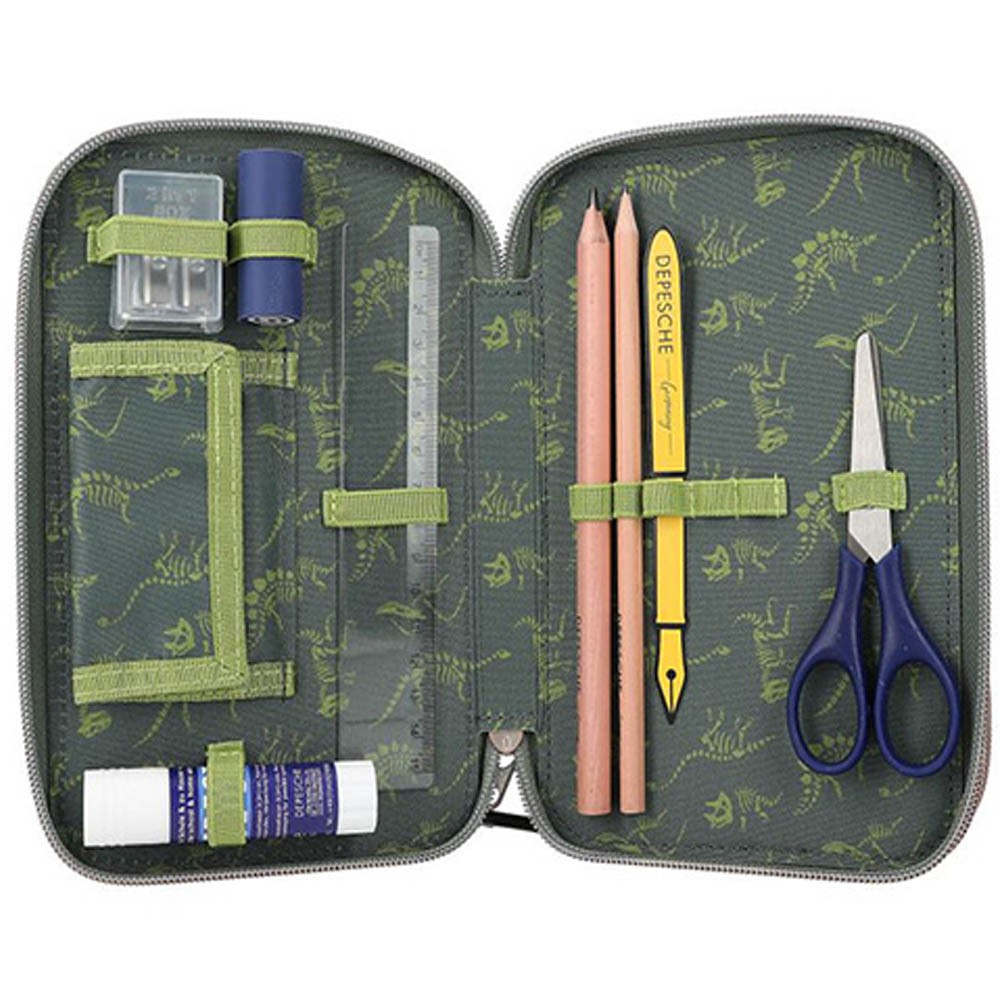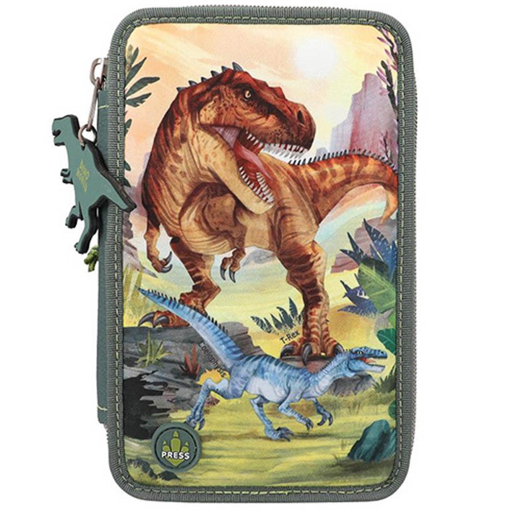 Veľmi kvalitne prevedené zapínanie na zips a vyhľadávaný dizajn kolekcieDino World vytvorili z tejto škoní pomôcky obľúbenca medzi peračníky.
