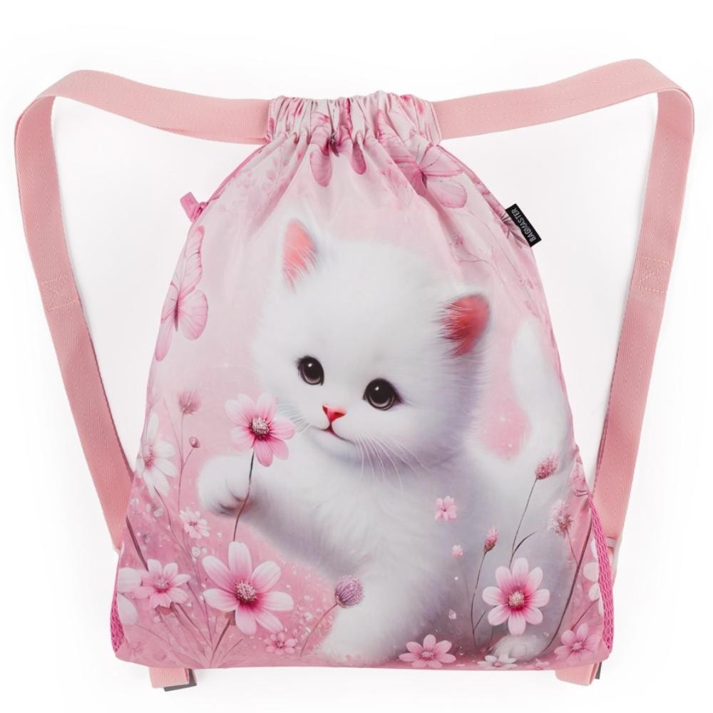 Školský látkový vak na prezuvky, úbor alebo veci na popoludňajší krúžok. Má nastaviteľné ramenné popruhy, reflexné prvky, vetracie otvory a krásny motív s mačičkou. Látkové vrecko je priestranné – zmestia sa do neho papuče, oblečenie a prezuvky na telocvik či veci do popoludňajšieho krúžku. Uzatvára sa jednoducho stiahnutím popruhov. Pevné a široké popruhy nerežú na ramenách. Pomocou praciek sa dá nastaviť dĺžka popruhov na postavu školáčky. V spodnej časti vrecka je sieťované odvetranie. Vďaka reflexným prvkom vak svieti v tme. Tieto prvky spĺňajú normy EÚ. Látkové vrecko si školák môže prehodiť k batohu cez jedno rameno alebo ho nosiť na oboch ramenách.