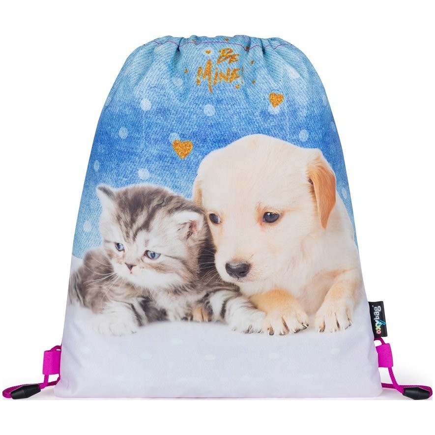 Vrecko na cvičky s motívom maznáčikov. Uzatváranie stiahnutím šnúrok, možnosť nosiť aj na chrbte alebo pripevniť k školskému batohu. Materiál 100% polyester.
