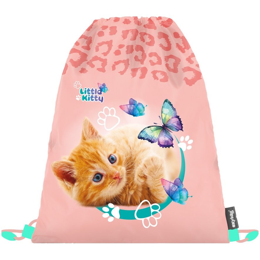 Dievčenský vak na chrbát Oxybag Mačka je vhodný do školy alebo na voľný čas. Uzatvára sa ľahko stiahnutím šnúrok a možno ho nosiť na chrbte ako batôžtek alebo pripevniť k školskému batohu.