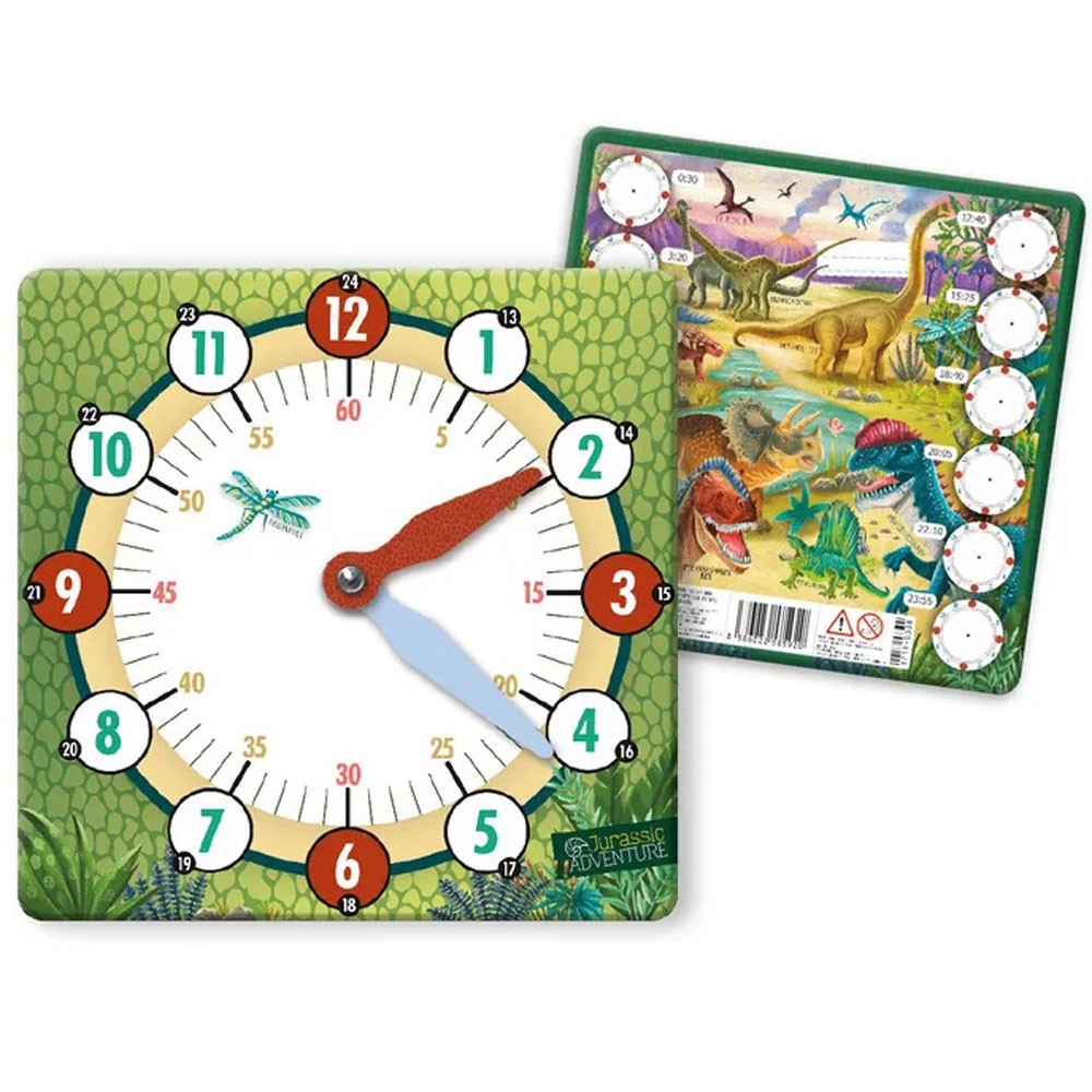 Hodiny obsahujú ciferník so zvýraznenými číslami 3, 6, 9 a 12 aj čísla od 1 po 12 a minútové delenie s pohyblivými ručičkami. Zadná strana hodiniek slúži ako učebná pomôcka, do ktorej môžu deti zakresľovať čas, ktorý dostanú za úlohu.