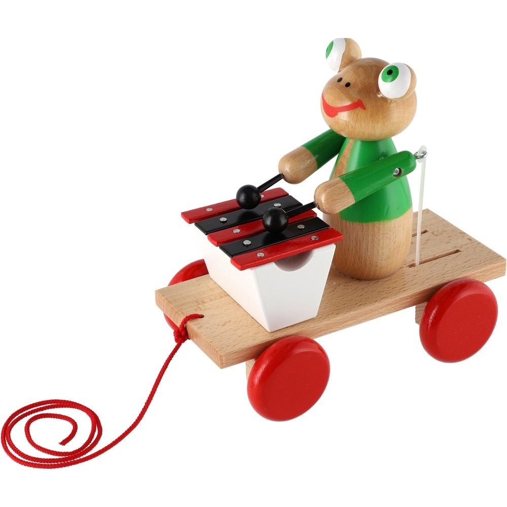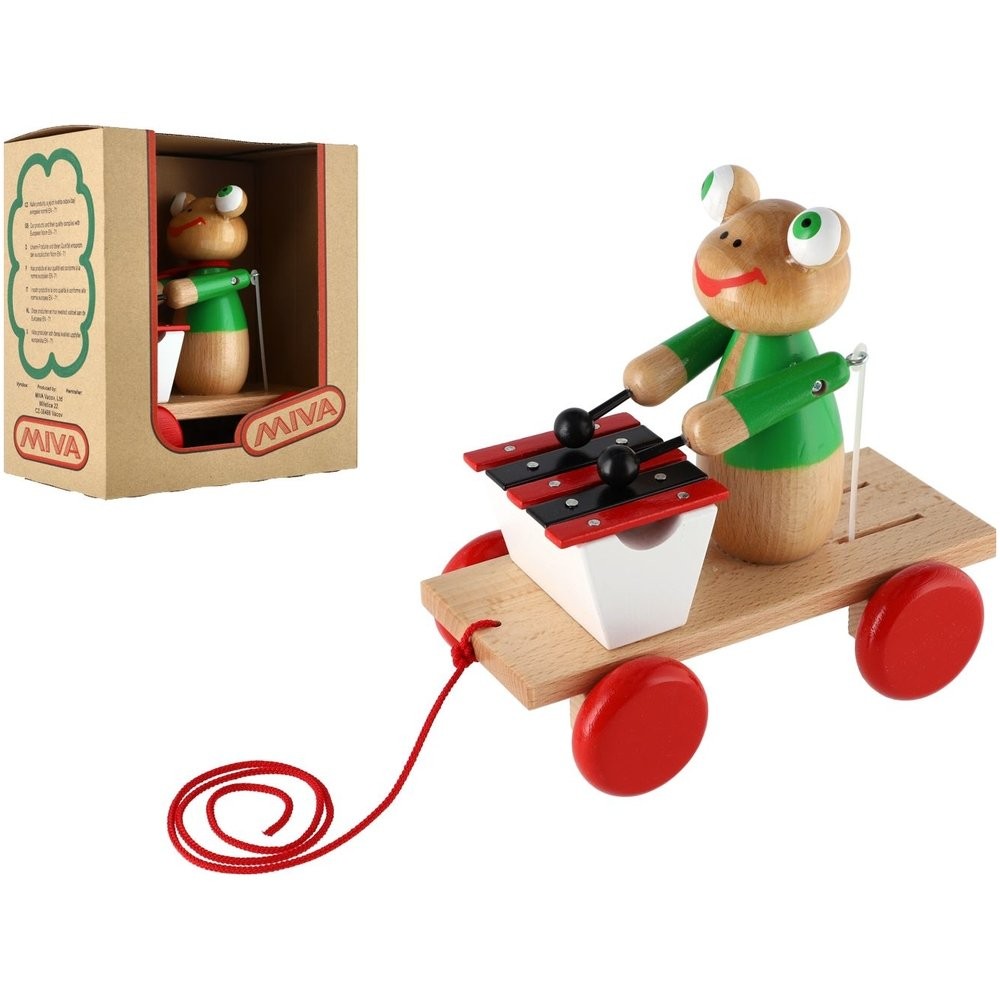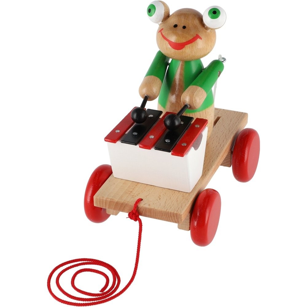 Drevená hračka na tahanie. Začalo vaše dieťatko už s prvými krôčikmi? Každé dieťatko má z chôdze obrovskú radosť a pre ešte väčšiu zábavu mu kúpte drevenú ťahaciu hračku. Ťahacia hračka žaba pri jazde hrá na xylofón.