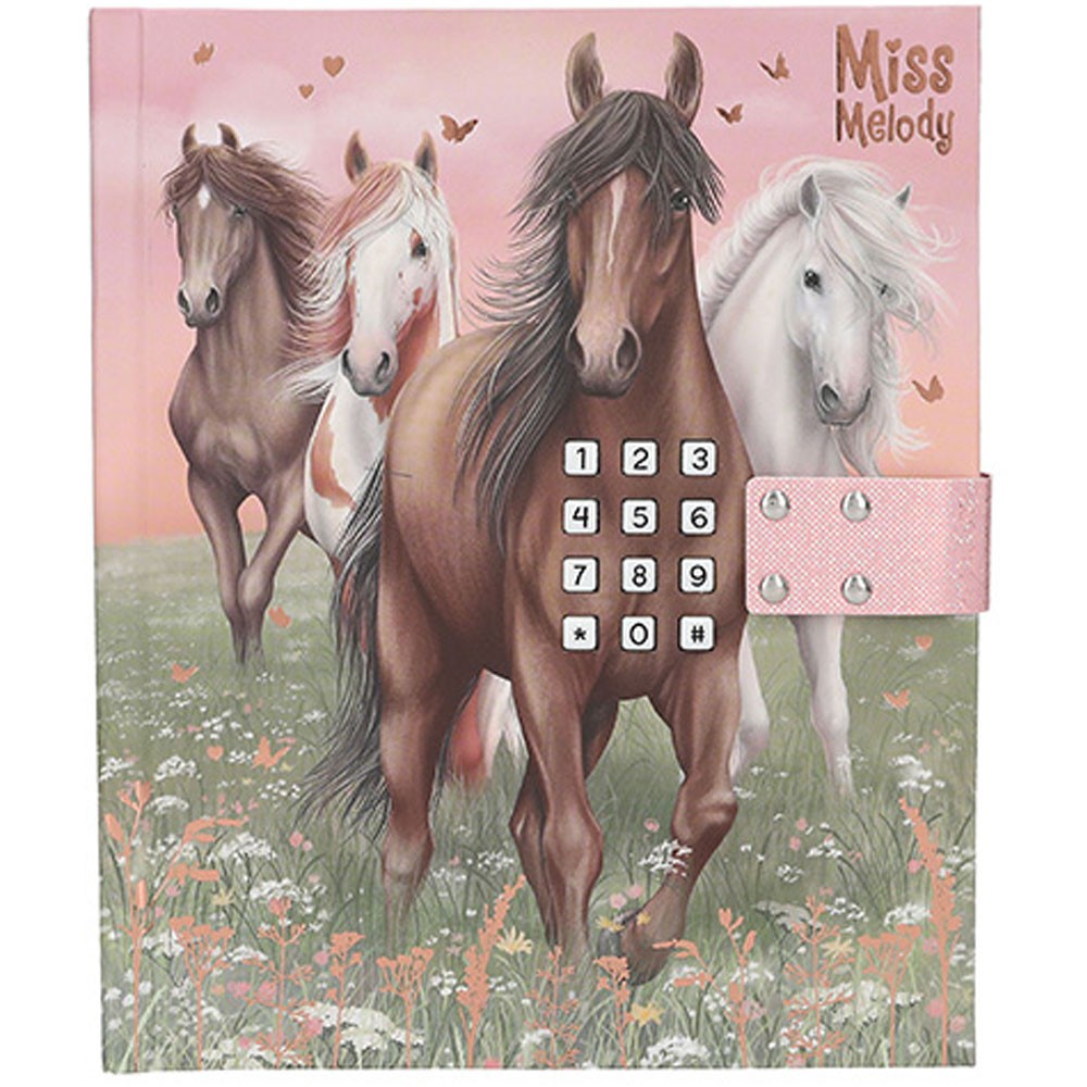 Kúzelnýdenníček na kód v pevných doskách s krásnym dizajnom značky Miss Melody. S týmto denníkom budú všetky tajomstvá opravu v bezpečí. Potešia všetky malé milovníčky koní!