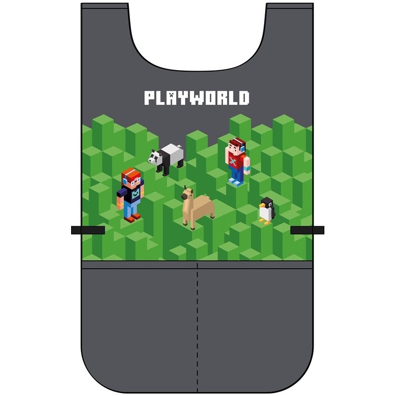 Detská zástera (pončo) na výtvarnú alebo na iné tvorivé aktivity. Obliekanie cez hlavu a na bokoch so zapínaním na cvoky. Vpredu sú dve priestranné vrecká.