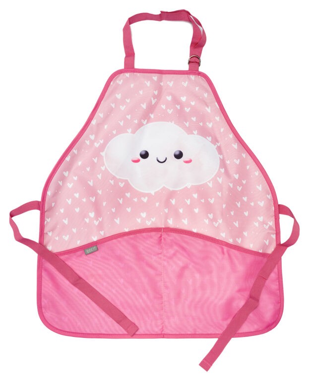 Detská zástera Stil Cloud sa navlieka nastaviteľným popruhom cez hlavu a zaviaže sa okolo tela pomocou šnúrok. Je vyrobená z umývateľného polyesterového materiálu, ktorý sa ľahko udržuje. Na prednej strane sú 2 vrecká na výtvarné pomôcky. Hlavná časť zásterky je potlačená obrázkami v školských dizajnoch, ladiacich k školskej kolekcii.