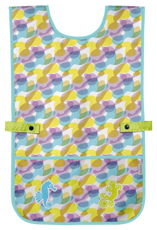 Dieťa nemusí zásteru zaväzovať na chrbte, ľahko si samo nastaví veľkosť okolo pása a zároveň má vďaka praktickému strihu chránenú väčšiu časť tela.