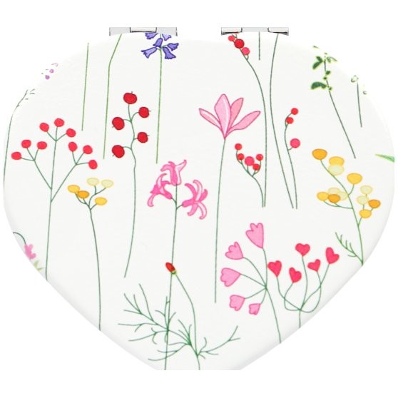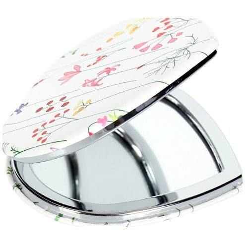 Vreckové zrkadlo je v jednej polovici zväčšovacie, v druhej normálne. Rozmery: 7 × 6 × 1 cm